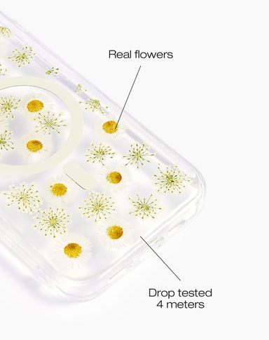 Gjennomsiktig deksel med ekte blomsterblader og MagSafe-kompatibilitet