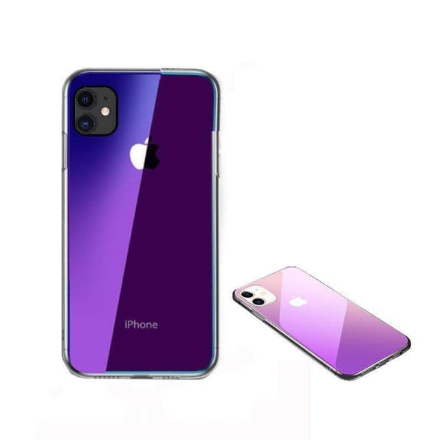 IPhone-dekselet har en bakside av gjennomsiktig herdet glass som skifter vakkert til lilla. Rammen i mykt, grepvennlig TPU-materiale er også gjennomsiktig. De hevede kantene på det støtbestandige mobildekselet bidrar til effektiv beskyttelse også foran.