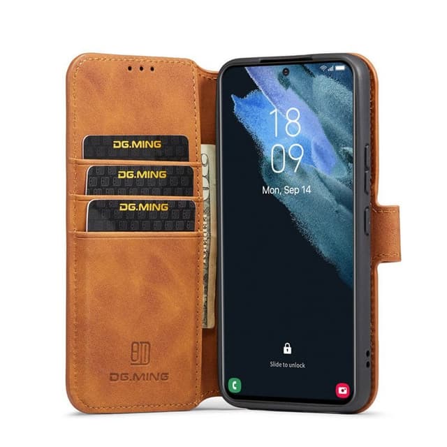 DG-Ming vintage mobil lommebok, designet med tilgang til telefonens funksjoner. Telefonen holdes på plass av et modellutstyrt, slitesterkt silikondeksel. Saken åpnes og lukkes lett med magnetlås. Angi funksjon, perfekt for filmvisning. Spesifikasjoner Spor: 3 stk Seddel: 1. Dette produktet er kompatibelt med: Samsung Galaxy S23 Materiale: Pu skinn Produsent: DG-Ming