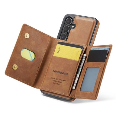 Mobildekselet tilbyr en komplett løsning for å beskytte telefonen din samtidig som brukervennligheten forbedres. Utstyrt med en avtakbar magnetisk lommebok med plass til kredittkort. Mobildekselet har integrerte magneter som holder lommeboken på plass. Mobildekselet har MagSafe-teknologi, som sikrer en trygg og effektiv tilkobling for trådløs lading. Lommebokens deksel kan brettes til en horisontal posisjon og fungerer som en stabil base for håndfri visning av videoer, videosamtaler eller lesing. Praktisk og enkelt å besvare samtaler eller la lommeboken være hjemme og kun bruke telefonen.