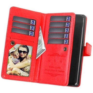 Mobil lommeboken er designet med utklipp for volumknapper, høyttalere, mikrofon, kamera og ladeuttak osv. ...