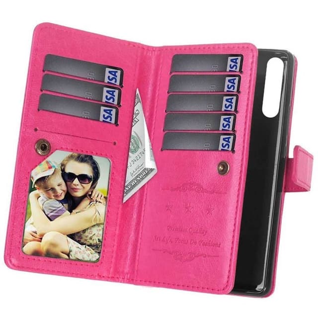 Mobil lommebok Dobbel flip Flexi 9-kort - Slitesterk silikonramme (flexi) holder telefonen på plass. - Skjult magnetlås holder mobil lommeboken lukket. - Kortsporene er lukket med en knappelås. - Glatt side som beskytter telefonens skjerm. Spesifikasjoner Farge: Svart, brun, rød, rosa, hvit, lyseblå Antall spor: 9 (hvorav 1 fotolomme) Antall seddelommer: 2 stk Fotolommer: 1. Annet: Hull for håndleddsstropp Passer til: Sony Xperia 5 II Modell nr: XQ-AS52 (6.1"") Materiale: PU-lær