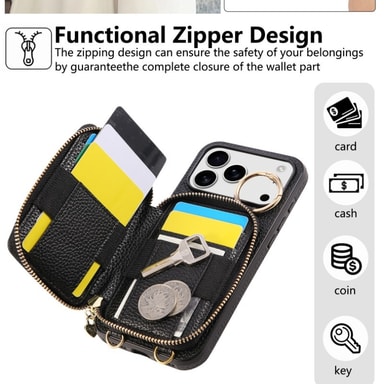 Lommebok og stativ: Dette etuiet kombinerer funksjonaliteten til en lommebok og et stativ. De innebygde kortsporene holder dine viktigste kort sikkert, og eliminerer behovet for en separat lommebok. Stativfunksjonen lar deg støtte opp din iPhone 17 Pro Max for komfortabel visning av videoer, videosamtaler eller surfing på nettet. Denne 2-i-1-designen er perfekt for å forenkle din daglige bæring og forbedre din mobile opplevelse. Nyt bekvemmeligheten av å ha dine kort og underholdning lett tilgjengelig i ett stilig og beskyttende etui. Det er ideelt for pendlere, reisende og alle som verdsetter effektivitet.