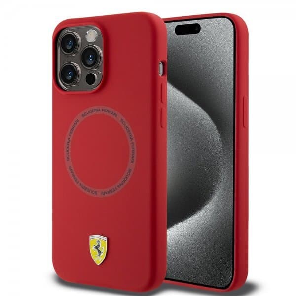 Ferrari iPhone 15 Pro Max Deksel Silicone MagSafe Rød