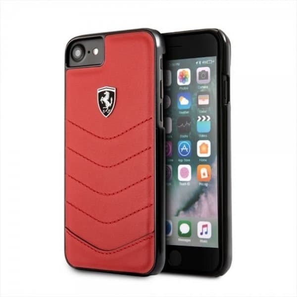 Ferrari iPhone 8/7 Deksel Røda SStoffn Ekte Skinn Rød och Svart