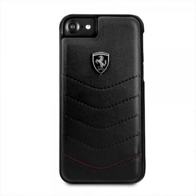 • Ferrari iPhone 8/7 Deksel Svarta SStoffn Ferrari Logo Ekte Skinn Svart