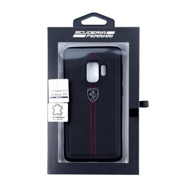 Ferrari Vertical Stripe Deksel till Samsung Galaxy S9 Ekte Skinn Svart