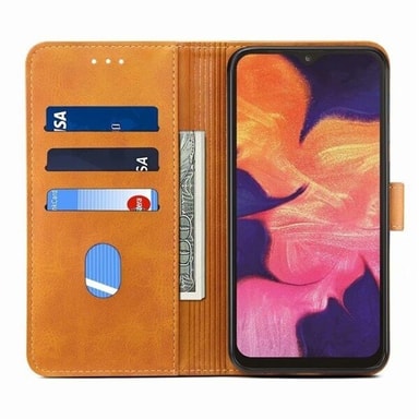 Elegant og funksjonelt flip deksel i kunstlær med stativfunksjon og flere lommer for kredittkort, visittkort og sedler. Enkel tilgang til telefonens porter og knapper uten å ta av dekselet.