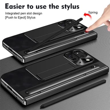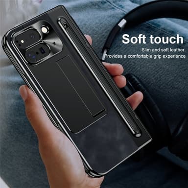For Google Pixel 10 Pro Fold-deksel, pennholder, stativ, telefondeksel med herdet glassfilm, pekepenn - svart【Premiummateriale for overlegen beskyttelse】Laget av PU-skinn og PC, tilbyr dette dekselet en kombinasjon av stil og stabilitet【Forbedret linLes mer om produktet