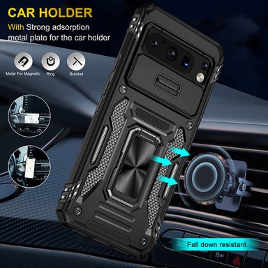 Forbedret beskyttelse: Dette dekselet gir omfattende beskyttelse for Google Pixel med et glidende linsedeksel for å beskytte kameraet og robust konstruksjon for å forhindre fall og støt.