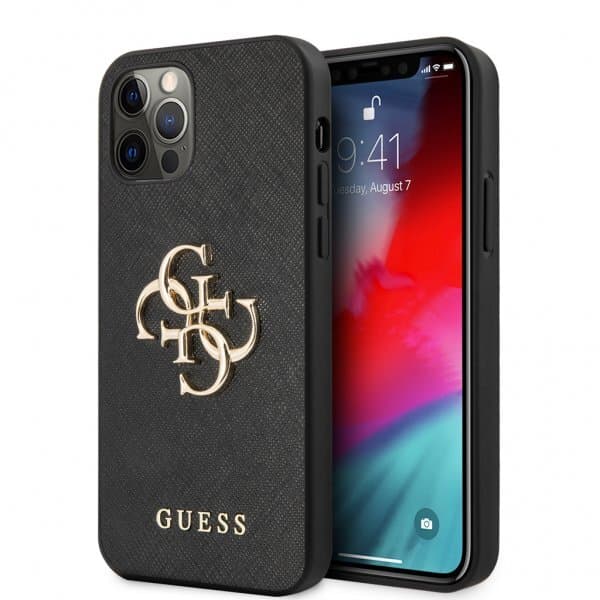 Guess iPhone 12 Pro Max Deksel 4G Logo Saffiano Svart