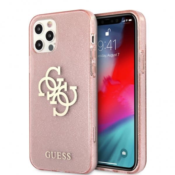 • Guess iPhone 12 Pro Max Deksel Full Glitter Rosa
