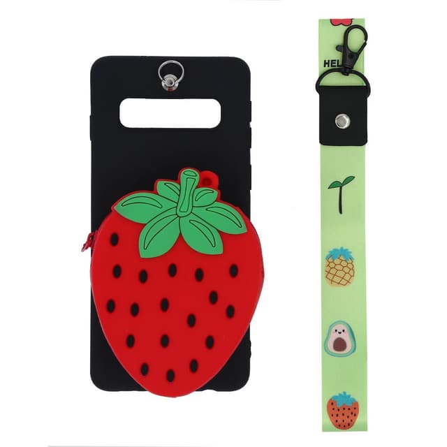 Beskytt telefonen med et mobildeksel av silikon som har et myntrom i form av et jordbær på baksiden av dekselet. Myntrommet er utstyrt med glidelås, slik at du også kan oppbevare nøklene, hodetelefonene eller andre små ting der. Den medfølgende stroppen festes enkelt til skallet slik at du kan henge den rundt nakken og alltid holde orden på tingene dine.