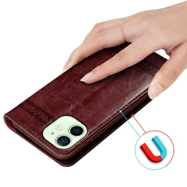 Lommebokdeksel for iPhone 12 MINI med magnetisk lukking, stativfunksjon. Med dette dekselet er telefonen perfekt beskyttet. Dekselet er laget av materialer av høy kvalitet. Alle porter er fritt tilgjengeligeLes mer om produktet