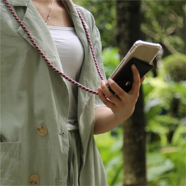 DESIGN: Ekstremt tynt mobiltelefondeksel som tilpasser seg perfekt til formen på smarttelefonen din. Kombinasjonen med dekselet, stroppen for å henge rundt halsen og etuiet til småting gjør dette settet til en allrounder.