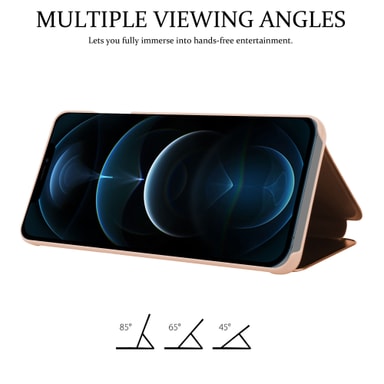 DESIGN: Dekselet i klarsynt design gir deg rask og enkel betjening av telefonen. Svar på et anrop eller se på klokken uten å åpne etuiet. Med stativfunksjonen kan du enkelt justere smarttelefonen slik du ønsker å se filmer eller gjennomføre videokonferanser.