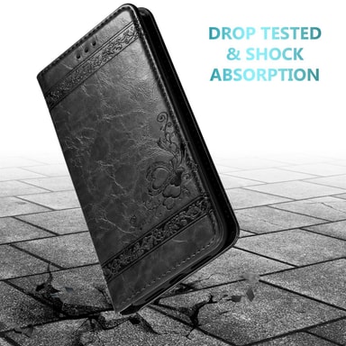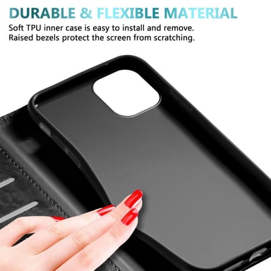 DESIGN: Ultratynt mobiltelefondeksel i bokstil med kortspor, stativfunksjon, integrert TPU silikondeksel og en magnetisk lukking uten plagsom klaff.