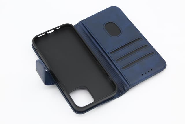 Stilig mobildeksel med kortrom: Mobildekselet har praktiske kortrom der du kan lagre kredittkort, bankkort, førerkort og ID-kort. Mobildekselens materiale i blå PU-lær gjør mobilen din til et stilig tilbehør.
