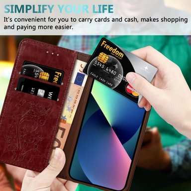 lommebokdeksel gir beskyttelse og perfekt hold til mobiltelefonen uten at det går på bekostning av komfort eller brukervennlighet. I tillegg er dette etuiet designet med magnetisk lukking, helt uten klaff, for å gjøre tilgangen så enkel som mulig.