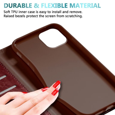 DESIGN: Ultratynt mobiltelefondeksel i bokstil med kortspor, stativfunksjon, integrert TPU silikondeksel og en magnetisk lukking uten plagsom klaff.