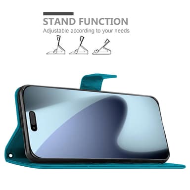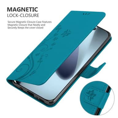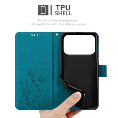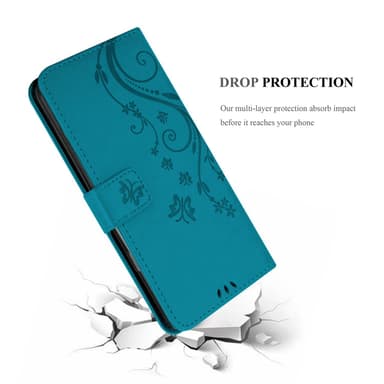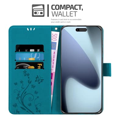 iPhone 17 PRO lommebokdeksel Blomster Case (Blå)