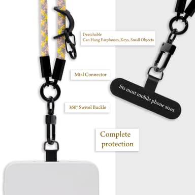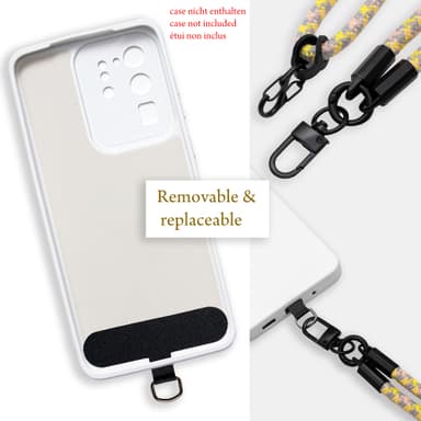 Universell mobiltelefonkjede med justerbar stropp og pute for innsetting. Takket være sin universelle design passer mobiltelefonkjeden til de fleste mobiltelefonstørrelser og -modeller. Du kan enkelt feste mobiltelefonen din til kjeden.Les mer om produktet