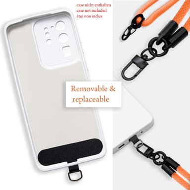Universell mobiltelefonkjede med justerbar stropp og pute for innsetting. Takket være sin universelle design passer mobiltelefonkjeden til de fleste mobiltelefonstørrelser og -modeller. Du kan enkelt feste mobiltelefonen din til kjeden.Les mer om produktet