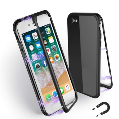 Magnetisk deksel i herdet glass : Beskytt din iPhone 7 eller 8 med et herdet glassdeksel med magnetisk metallramme. IPhone-dekselet er gjennomsiktig på baksiden slik at det klassiske stilige iPhone-designet er synlig. Skallet har nøyaktige målte stikkontakter for høyttalere, lading / lydport og knapper.
