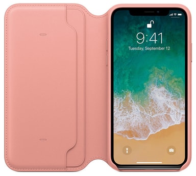 • iPhone X Folio deksel i lær (rosa)