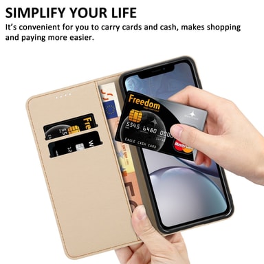 Lommebokdeksel for iPhone XR med magnetisk lukking, stativfunksjon. Med dette dekselet er telefonen perfekt beskyttet. Dekselet er laget av materialer av høy kvalitet. Alle porter er fritt tilgjengeligeLes mer om produktet
