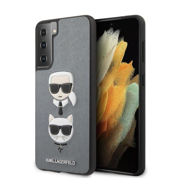 • Karl Lagerfeld Samsung Galaxy S21 Plus Deksel Saffiano Karl & Choupette Sølv