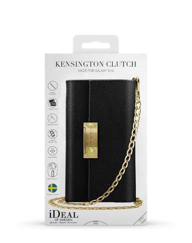 Kensington Cross Body Clutch tar navnet sitt fra en av Londons mest velstående regioner og vil være en stilig oppdatering i garderoben din. Ved siden av tidløst svart, kommer denne vesken i et kremet fargespekter inspirert av områdets eksklusive gatelandskap, romantisk halvmåne og malte hus i myke fargetoner og drømmende pasteller. Gyllent metall gir Kensington Clutch en elegant og luksuriøs finish. Et svart standard deksel med høy kvalitet er inkludert.