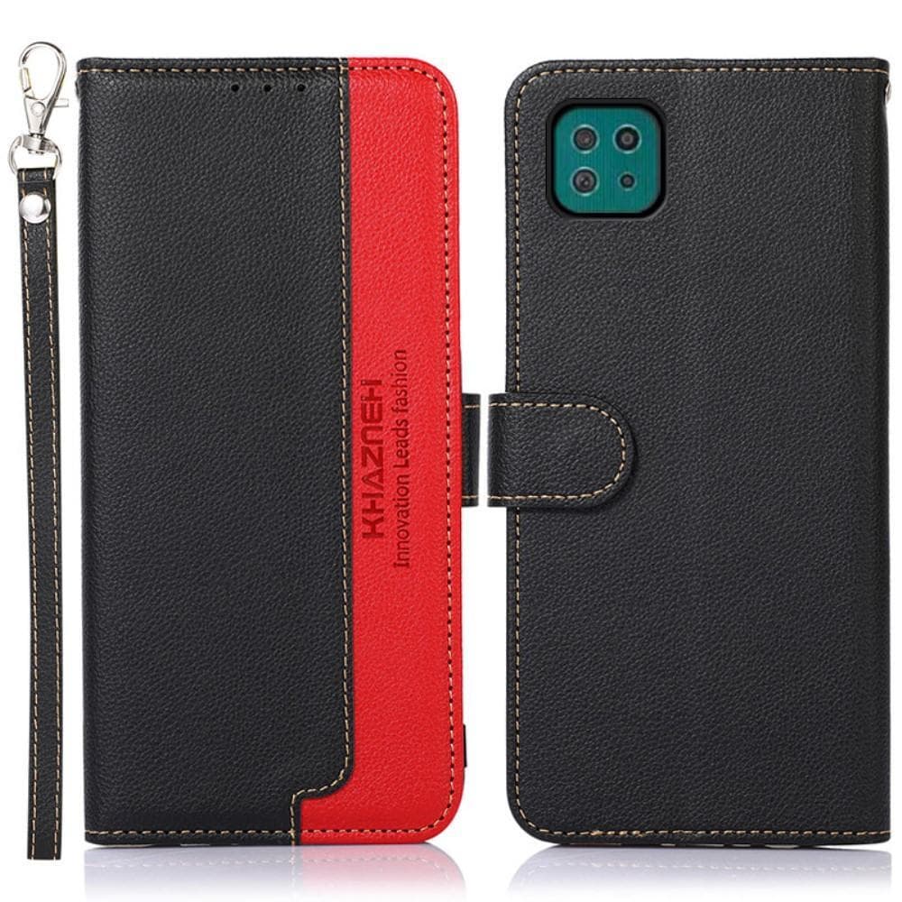 KHAZNEH stilig lommebok-deksel til Samsung Galaxy A22 5G - rød-svart Full tilgang til