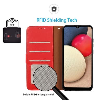 KHAZNEH Til Xiaomi Redmi 15C Etui RFID-blokkerende telefonlærfutteral Rød/Svart