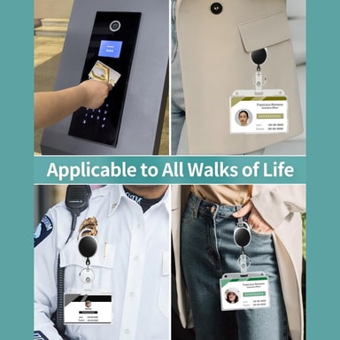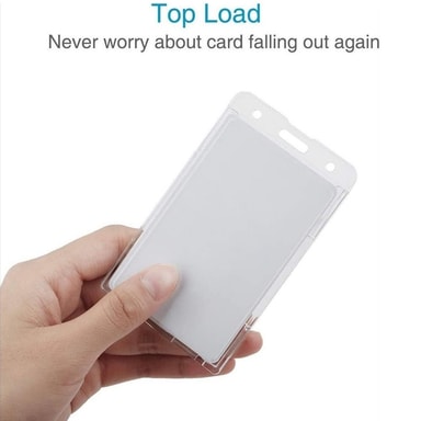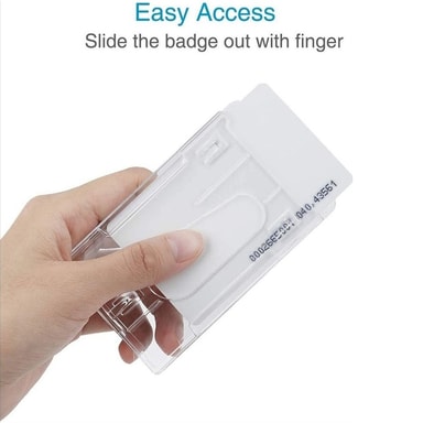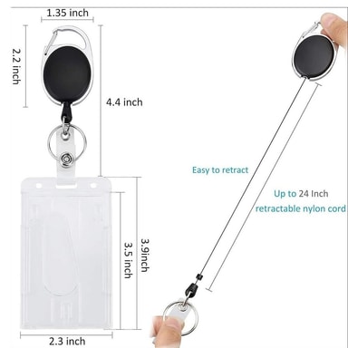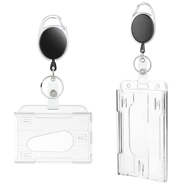 Gjennomsiktig kortholder med dobbel bruk, PS-kortholder med teleskopspenne - Horisontal【Dobbelfunksjonsdesign】 Allsidig ID-kortholder med uttrekkbar snor, egnet for både vertikal og horisontal kortvisning.【Materiale av høy kvalitet】 Laget av miljøvenLes mer om produktet