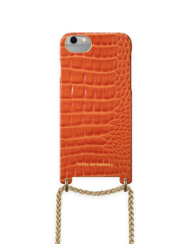 Nye Lilo Necklace Case i Orange Croco skiller seg ut med en fargerik look, inspirert av moderne kunstneriske uttrykk. Det allsidige designet kan brukes som en crossbody eller klassisk halskjede, så du kan style det med antrekket ditt.