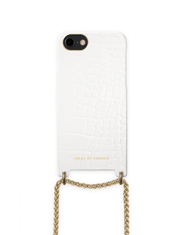 Nye Lilo Necklace Case i White Croco skiller seg ut med en fargerik look, inspirert av moderne kunstneriske uttrykk. Det allsidige designet kan brukes som en crossbody eller klassisk halskjede, så du kan style det med antrekket ditt.