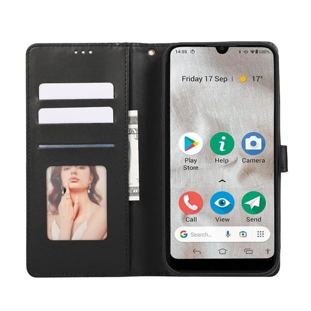 En elegant kombinasjon av funksjonalitet og stil. Utstyrt med tre kortspor kan du enkelt bære med deg dine viktigste bankkort, ID-kort eller kontanter slik at du alltid har dem innen rekkevidde. Mobiltelefonen er festet i en skreddersydd ramme av silikon. Etuiet beskytter hele telefonen. Tilgang til telefonens funksjoner. Mobil lommeboken har også en integrert støttefunksjon, perfekt for filmvisning. Skjult magnetlås holder lommeboken lukket.
