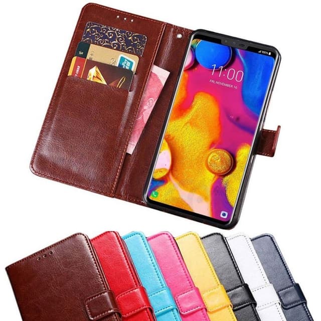 Spesifikasjoner Farger: Svart, brun, rød, lyseblå, rosa, gul, hvit, mørk blå Antall spor: 3 stk Antall seddelommer: 1. Kompatibilitet: LG V40 ThinQ Modell nr.: LM-V405QA, LM-V405TA, LM-V405UA (6.4 "") Materiale: Pu-lær Annet: Settfunksjon, skjult magnetlås og silikonramme.