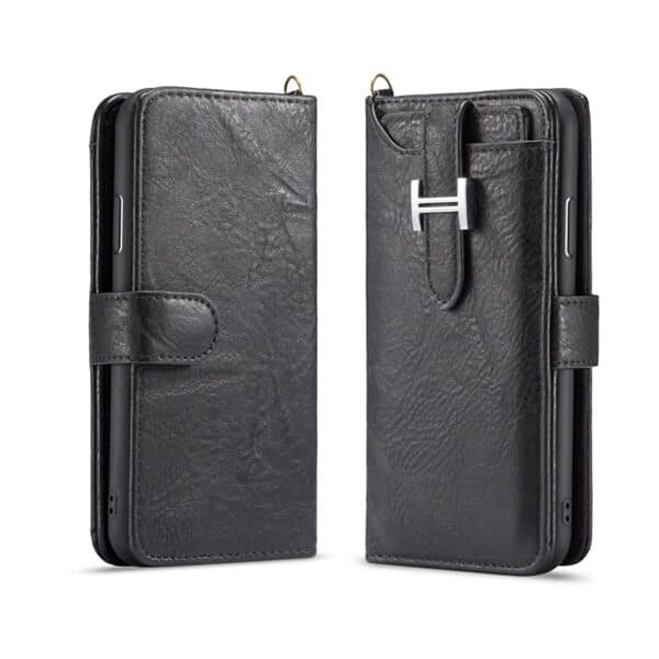 Med dette elegante lommebokdeksel i kunstlær til din iPhone XS Max trenger du ikke noen lommebok. Dekselet beskytter ikke bare telefonen mot riper, slag og slaitasje, det har også en kortholder for flere kredittkort, visittkort og sedler samt et rom med glidelås for småpenger og andre ting. Et smart og lekkert beskyttelsedeksel og lommebok i ett som sparer plass i jakkelommen eller håndvesken. Alle porter og knapper på telefonen tilgjengelige uten at du må ta av dekselet.
