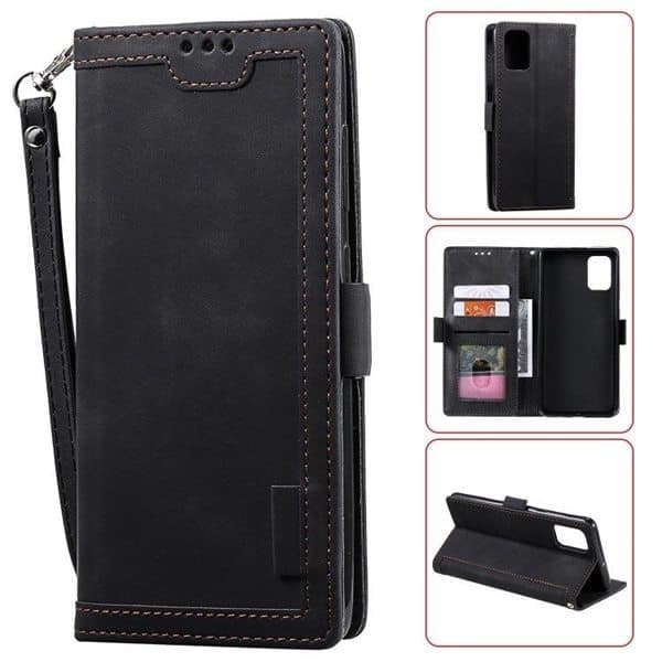 Lommebokdeksel med støtdempende TPU deksel innerst og kortholder til Huawei P40 Pro. Et elegant og funksjonelt beskyttelsedeksel med stativfunksjon for horisontell visning samt flere rom for kredittkort, visittkort, sedler og foto. Dekselet er laget av solid PU-lær med dekorativ søm, magnetspenne og håndleddsreim. Enkel tilgang til telefonens alle porter og knapper uten å ta av dekselet.