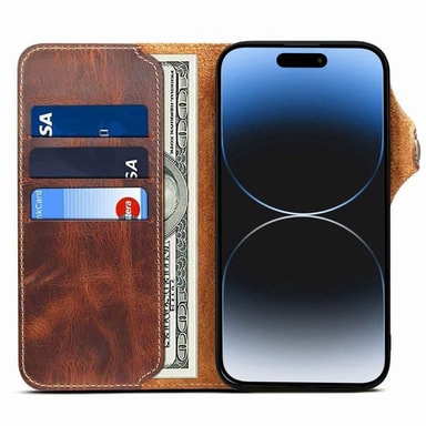 Lommeboketui 3-korts ekte lær Apple iPhone 15 Pro - BrunLes mer om produktet