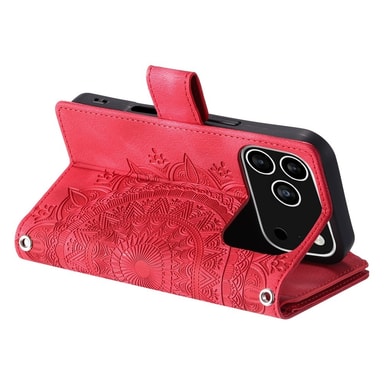 Lommeboketui kompatibelt med iPhone 17 Pro PU lær telefonetui mandala blomstermønsterPremiummaterialeDette telefonetuiet er laget av premium PU lær med TPU innside og gir en behagelig følelse og stabil beskyttelseModerne designDette etuiet er pregetLes mer om produktet