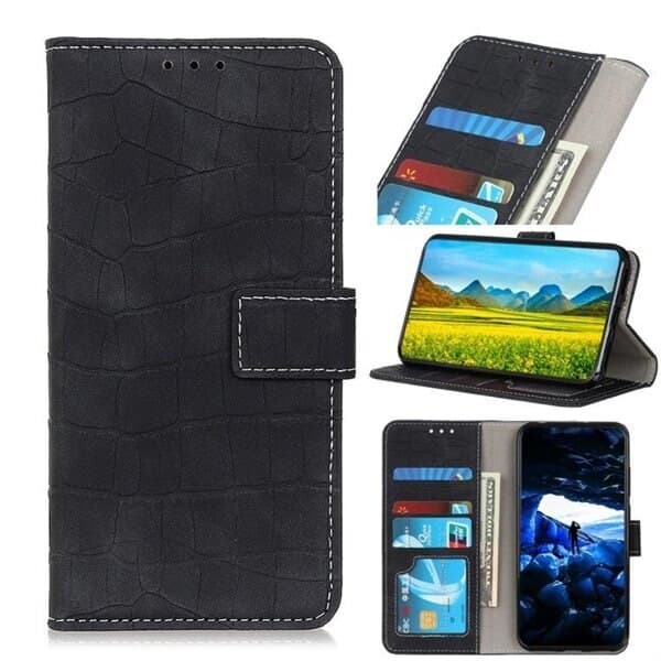 Lommebok med plass til tre kort og og lomme til sedler. Futteralet er laget av et mykt TPU-lærmateriale og kan lett brettes til et praktisk stativ. Magneten på futteralet gjør at det forblir lukket og ikke flagrer.