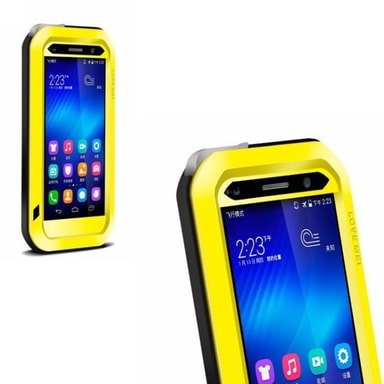 Et spesielt deksel i 3 lag som er skrudd sammen, mobiltelefonen er beskyttet i en støtsikker silikon vugge.