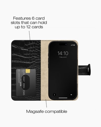 Oppgrader mobildekselet ditt til et lommebokdeksel med 6 kortlommer og MagSafe-kompatibilitet