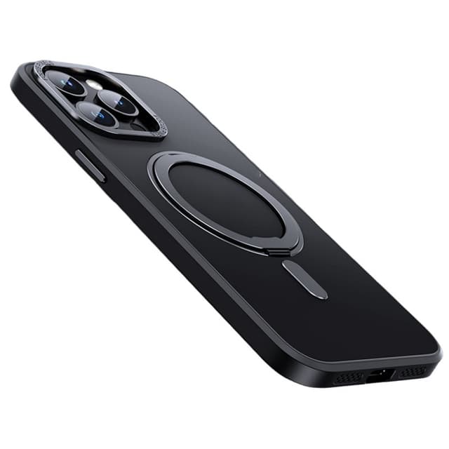 • Magnetisk beskyttende telefondeksel med usynlig stativ for iPhone Sort 15x7.5x1 cm iPhone 15 Pro