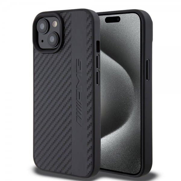 Mercedes Benz iPhone 15 Plus Deksel Carbon Effect Leather Stripe AMG Svart