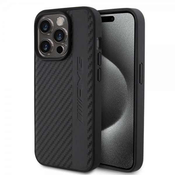 Mercedes Benz iPhone 15 Pro Deksel Carbon Effect Leather Stripe AMG Svart