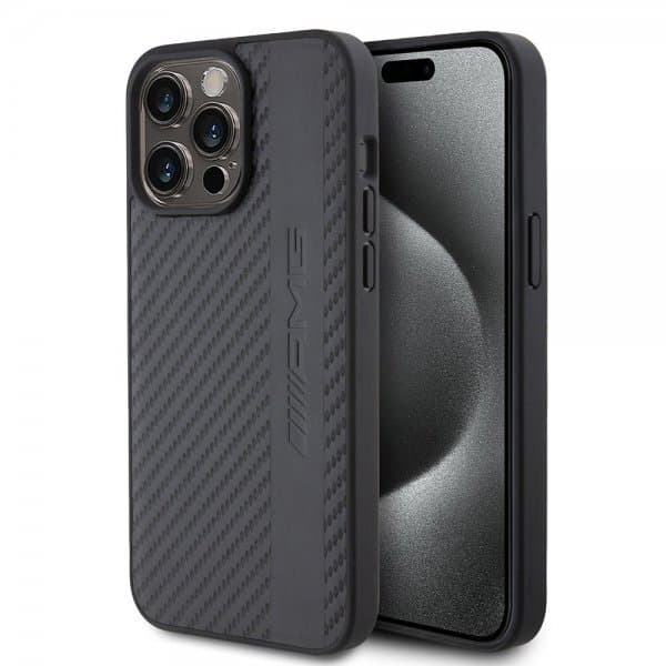 Mercedes Benz iPhone 15 Pro Max Deksel Carbon Effect Leather Stripe AMG Svart